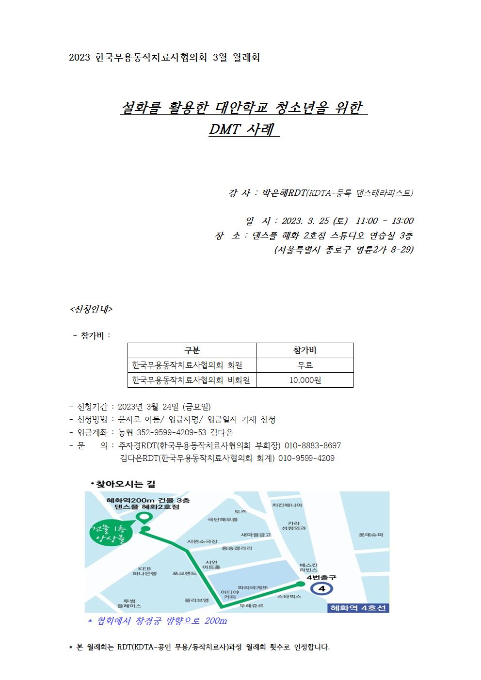 [월례회] [월례회]2023' KSDTE 3월 월례회-설화를 활용한 대안학교 청소년을 위한 DMT 사례