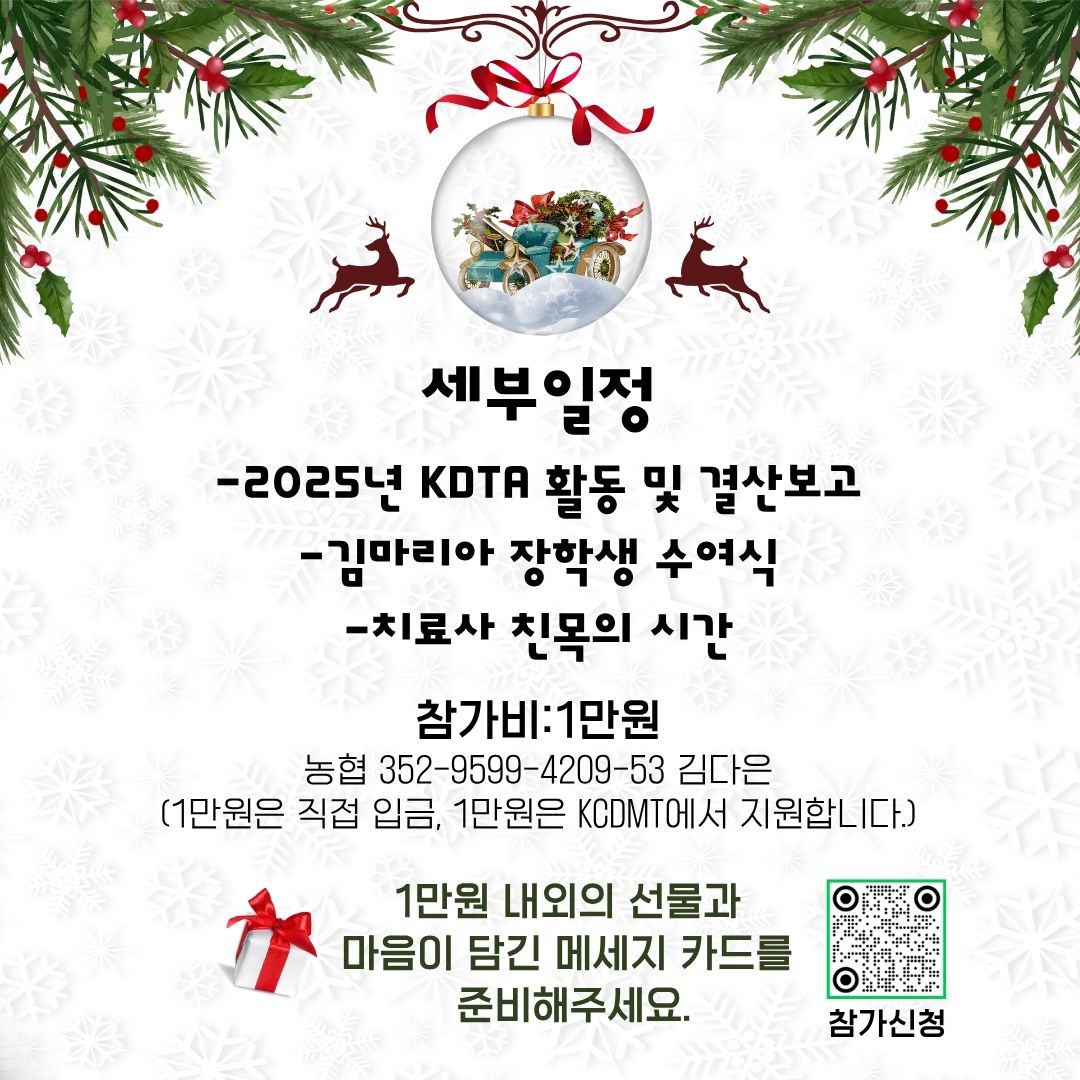2025년 KDTA 12월 이사회 및 송년회 일정은 다음과 같습니다. 일정: 2025년 12월 20일(토)