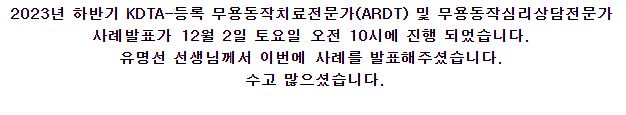 개인 사례발표의 주제: 무용동작치료가 윌리암스증후군 아동의 고유수용성 감각에 미치는 영향