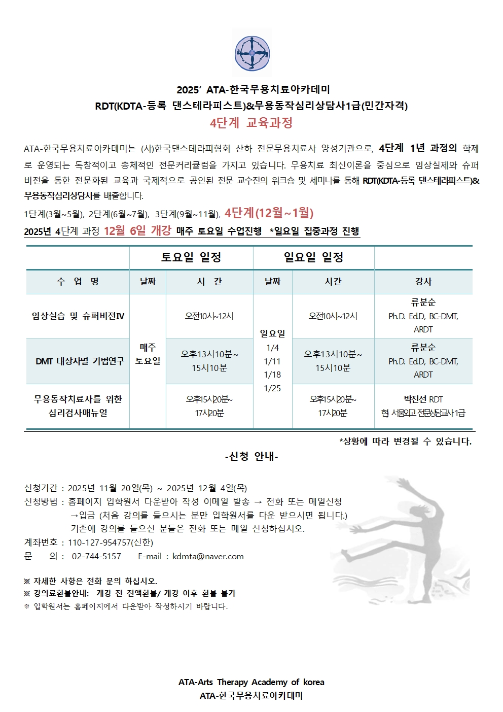 [ATA-교육과정] [ATA-교육과정] 2025' ATA 4단계 교육과정 12월 6일 토요일 개강