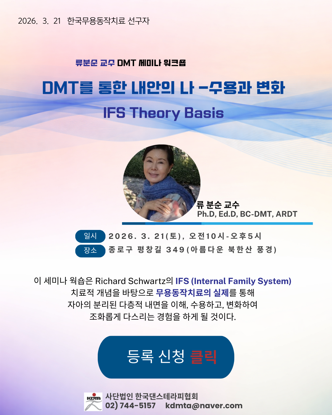 위의 유튜브 채널을 클릭하여, KDTA 무용치료 관련한 영상들을 시청해 주시길 바랍니다.